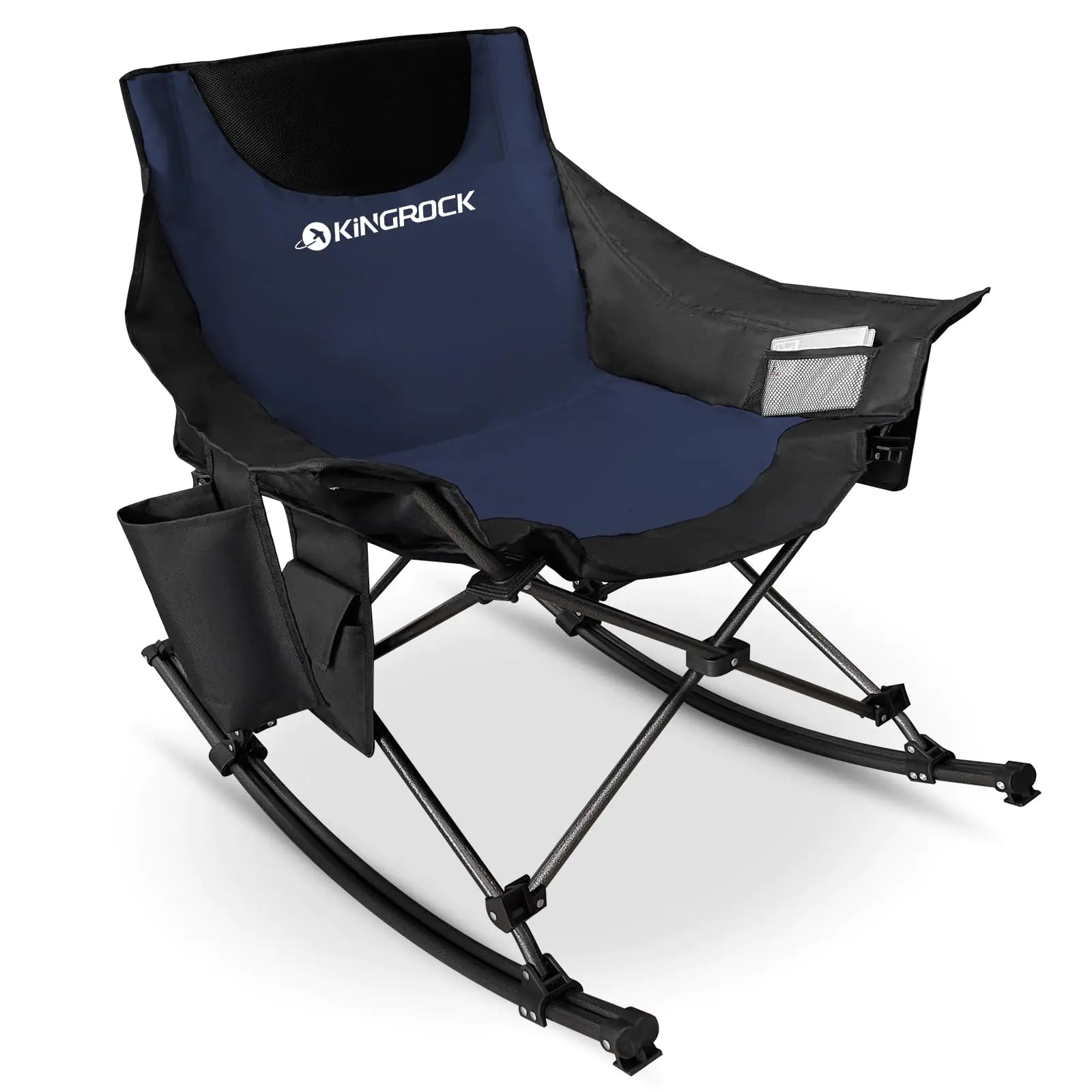 KINGROCK Oversized Rocking Camping Chair Folding Camp Chairs with Pocket and Carry Bags Rocking Camping Chairs for Adults with Pillow Cup Holder Navy